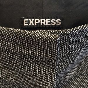 Black and white patterned tweed pants from Express in the "Editor" style. Great quality pants with a bit a stretch so are comfortable for interviews or a day at the office. Thick waistband with pockets. These pants are a size 4 SHORT. (I am 5'2 for reference and length is great - no alterations necessary). In pristine condition, worn a few times to interviews.