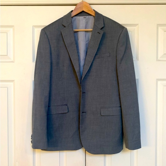This slim suit jacket features everything you want- comfort and a standout style. Machine Washable- ready when you are. Wrinkle-Resistant- look sharp all day, anytime, anywhere. Hyper Stretch- constructed with extra stretch in the elbows.