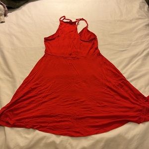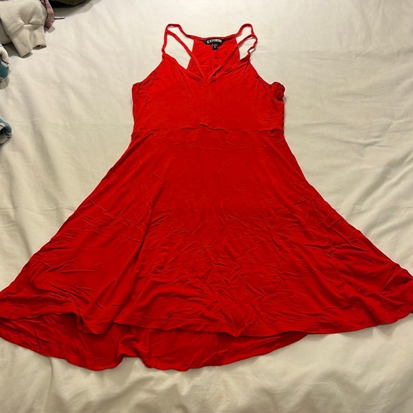 Firetruck red express sundress. Racer back style straps, V-neck with string over chest. Lightweight never worn no stains smoke free home