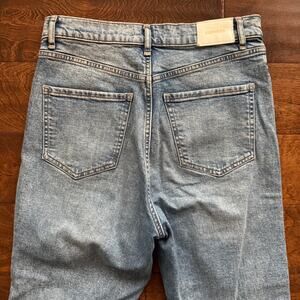 Express Super High Rise Ripped Mom Jeans Light Wash Denim Blue Women's Size 8R
