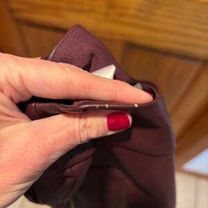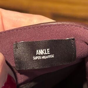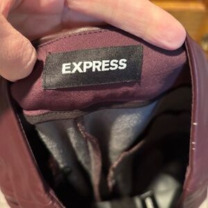 Express Super High Waisted Ankle Pleated Faux Leather Pants in burgundy. Hook and bar and zip closure. Slant front pockets. Women's size 2R. There is a spot where leather is flaked off. New with tags.