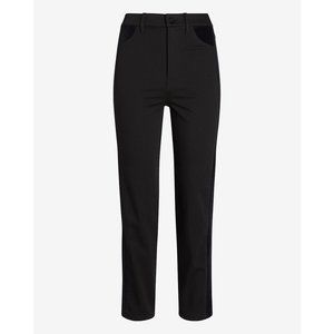 NEW EXPRESS SUPER HIGH WAISTED LUXE POLISHED BLACK VELVET PIECED STRAIGHT JEANS