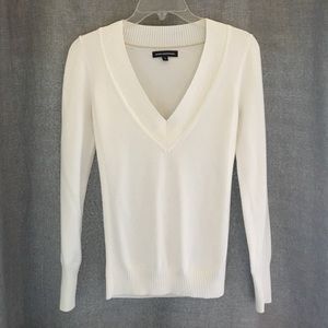 Express sweater. Soft, ivory/white v-neck with ribbed detailing. Flawless, never worn. From smoke and pet free home.