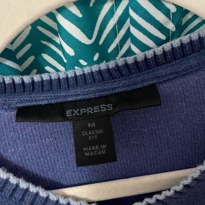 Express sweater. Size M. Dark blue with stripe detailed v-neck. Gently-worn with no rips, tears, or stains. Blue might be slightly faded, but I can’t remember ho me dark it initially was. EUC. Smoke-free, pet-friendly home. Bundle items and save!