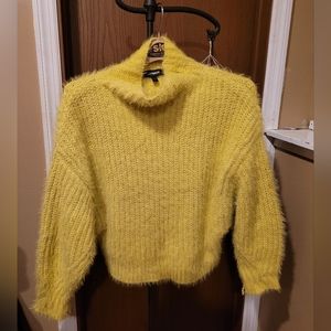 Did you ever want to be spotted from far away in a crowd? Maybe want to stand out at the office? Well, have I got the sweater for you, lovely Express chartreuse cashmere cowl neck sweater. Look at how much Joy I had wearing it, you can too!