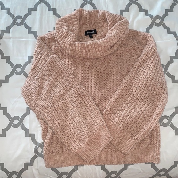 Light pink Express sweater size small. Like new condition other than small snag (pictured) no odors. Very soft plush material!