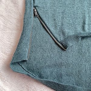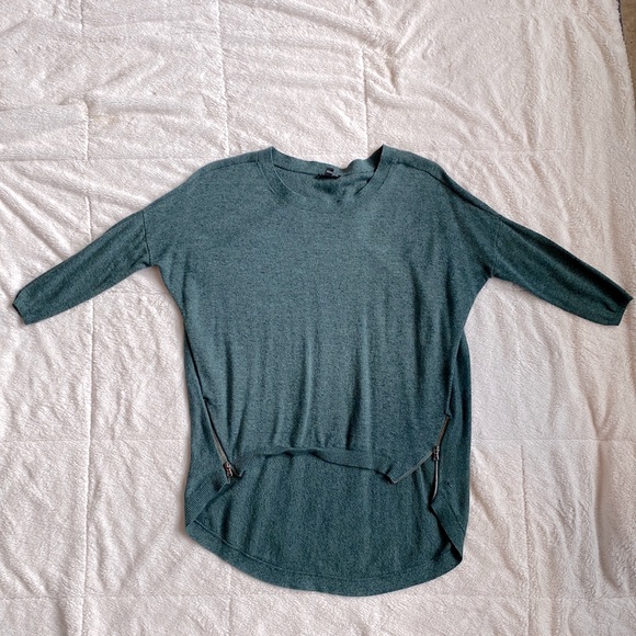 Half sleeve sweater. Zips on both sides. Very small hole on left bottom hem as shown in picture.