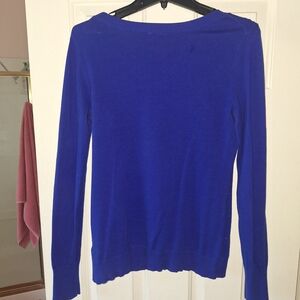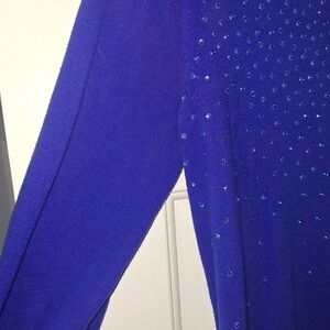 This is a gently used bright blue sweater with rhinestones in excellent condition. It comes from Express.
