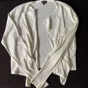 NWOT, cream color, soft lightweight material, sleeves are longer then normal length, back comes down to top of hips, front of sweater comes down a bit longer when it’s not wrapped