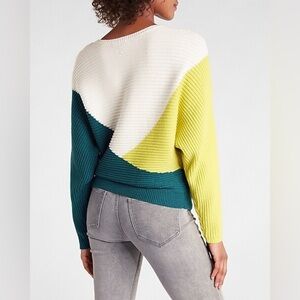 Express Sweater Blue Green Color Block Ribbed Dolman Sleeve Sweater Size Small