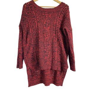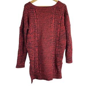 Express Sweater Cable Knit Women Sz S Red Black Oversized Slouchy Long Sleeve