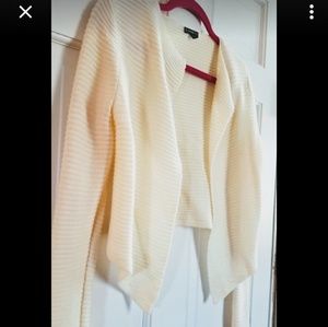 Express cream short cardigan with long sleeves- drapes towards the center / opening