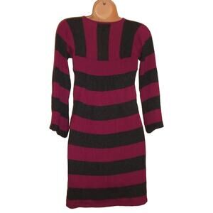 Express Sweater Dress Woman’s XS Pink & Gray Striped Knit Warm Winter Fall