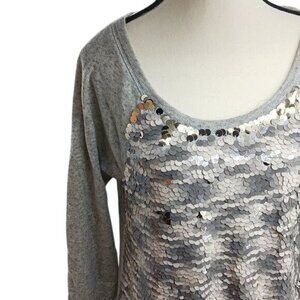 Express Sweater Gray Flip Sequins Long Sleeve Casual Womens Size Small