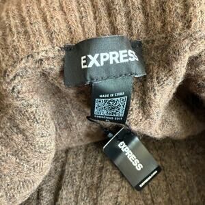 Express Sweater Jumper Women XL Brown Wool Cable Knit Cropped Boxy Dark Academia