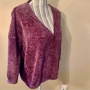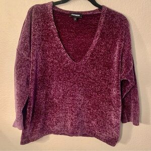 Express Sweater Medium Deep V-Neck Purple Chenille Super Soft 3/4 Length Sleeve