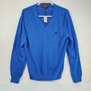 Express Sweater Men's Sz XL Blue V Neck Pullover Cotton Logo Embroidered Preppy