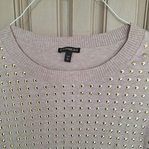 Express Sweater SzS/P Cream Gold Color Stud Embellished Front Banded Cuff/Hem Cotton/Nylon Light Weight Cute Sweater For Fall Weather