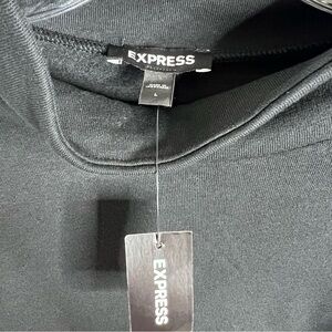 Express Sweater Women Large Mock Neck Fleece Black Crop Long Sleeve GG
