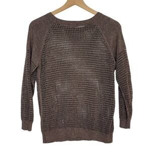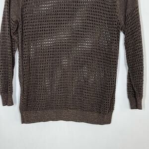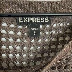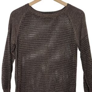 Express Sweater Women's Size Small Brown Metallic Open Knit Crochet Pullover Y2K