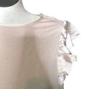 Satin ruffle detail at shoulder as well.