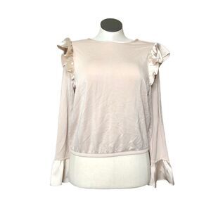 Express Sweatshirt Womens S Long Sleeve Ruffle Banded Bottom Blush Pink