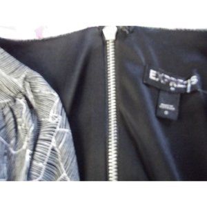 Express Sz 0 Black & White Sleeveless CutOut Back Elastic Waist Leaf Print Dress