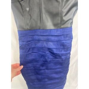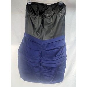 Express Sz 12 Blue & Black Mini Dress Club Evening Pleather Ruched Strapless