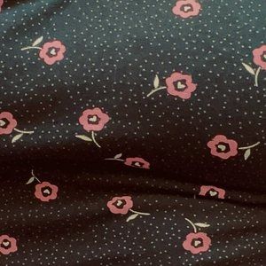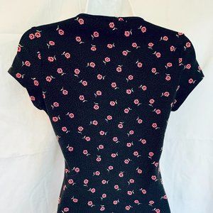 Express Sz M form-fitting tee shirt black with pink flowers and dots pattern