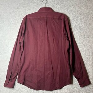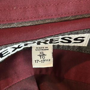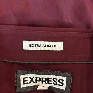 Express T Shirt Mens XL 17-17.5 Burgundy Long Sleeve Button Down Extra Slim Fit