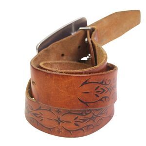 Express TOOLED BROWN REAL LEATHER 1 1/2"Wd DRESS CASUAL WOMEN'S BELT Size L (R76