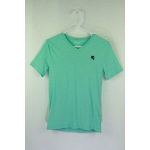 Express T-Shirt V Neck Short Sleeve Cotton Blue Embroidered Logo Womens XS