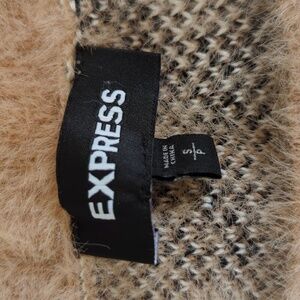 Express Tan Animal Print Cropped Fuzzy Sweater