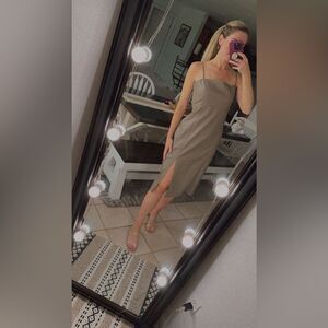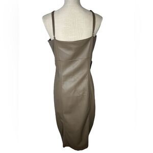 Express Tan Body Contour Faux Leather Cami Strap Midi Dress