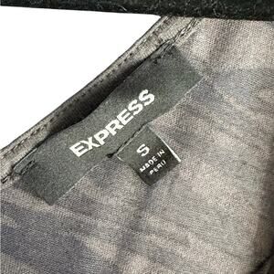 This tan black blouse from Express features a relaxed, boxy fit with stylish cap sleeves. Its lightweight fabric ensures comfort, making it a versatile addition to any wardrobe. Perfect for casual outings, this top offers a chic and effortless look. Size S. Length 26” chest 22” across flat. It is semi sheer.