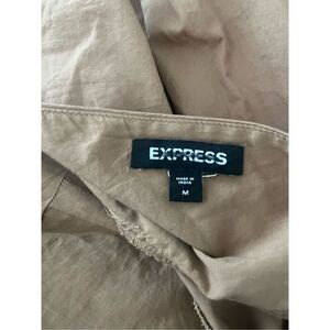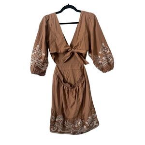 Express Tan Embroidered Eyelet V-Neck Tie Back Poplin Mini Dress