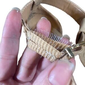 Express Tan Faux Suede Perforated Open Toe Ankle Strap Block Heel Women SZ 6