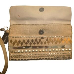 Express Tan, Gold, and Silver Clutch Wristlet, Metallic Accents, NWT