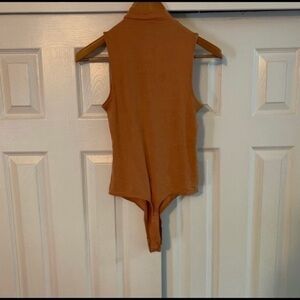Express Tan Ribbed Mock Neck Thong Body Suit Small