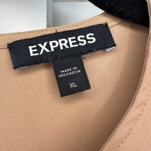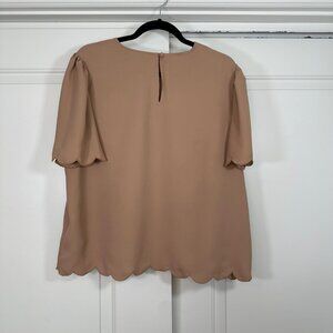 Express Tan Scallop Hem & Sleeve Crew Neck Blouse XL