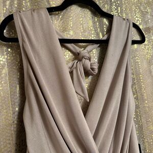 Express Tan Shiny Stretchy Wrap Front Halter Tie Neck Bodysuit Medium NWT