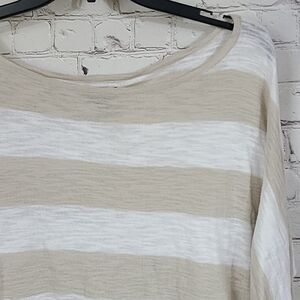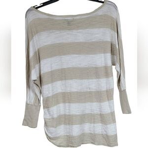 Express Tan Stripe Side Cinch Lightweight Slub Knit Sweater Neutral Small Top