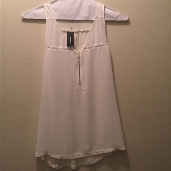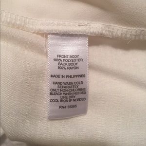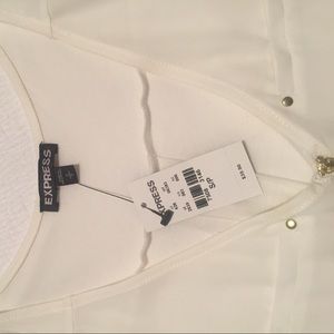 Ivory with gold details (studs and zipper). Polyester crepe front and rayon back with pretty pleat detail. New with tag, never worn. Size S.