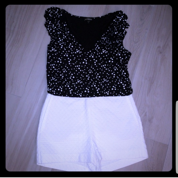 Black base white polka dot pattern Ruffled sleeves V neck Size small