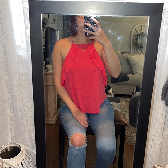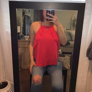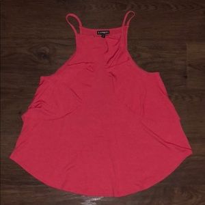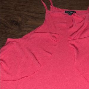Reddish-pink Express tank with side ruffle, cute, worn only once! Would need a strapless bra underneath!