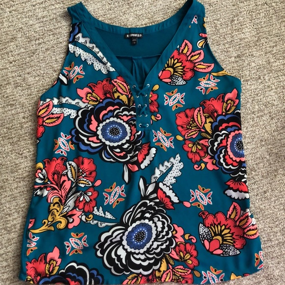 Very bright and colorful tank with bold floral patterns. Used but in great shape.