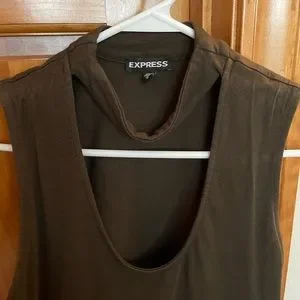 Dark olive color, size medium. Open neck