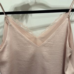 Light pink lace trimmed tank top. Great for work under a blazer. Worn once!