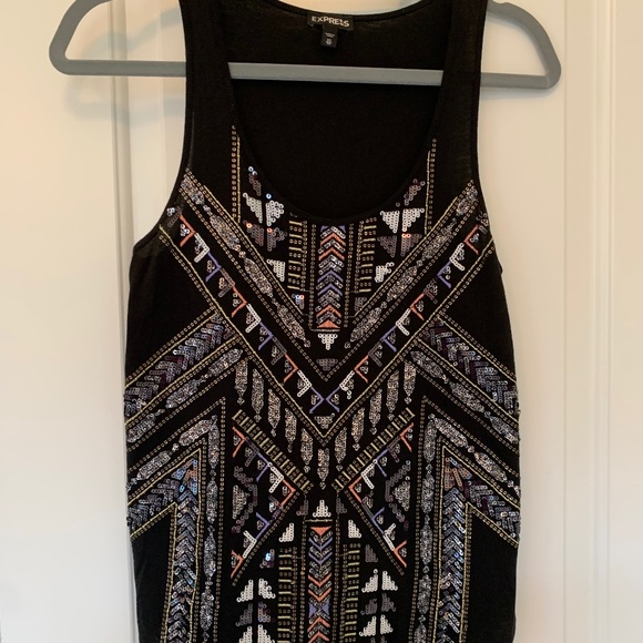 Express tank top with beaded design. Worn once; in perfect condition. Size XS.