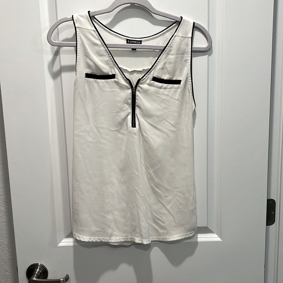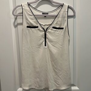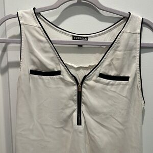 Wide strap tank with zipper front and faux pockets